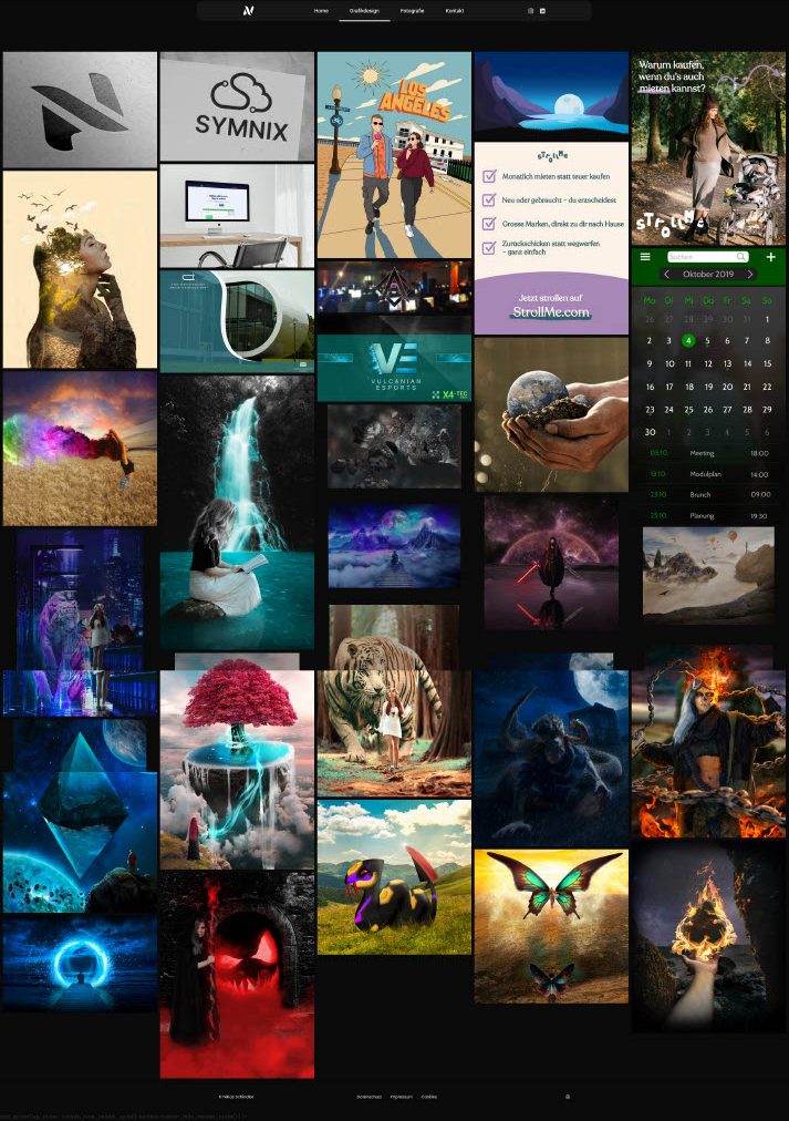 Darauf folgte die eigentliche Skills-Sektion, in welcher 3 Flächen (Grafikdesign, UI/UX, Fotografie) schnell und übersichtlich mein Können zeigen und zu den jeweiligen Galerien verlinken sollten.